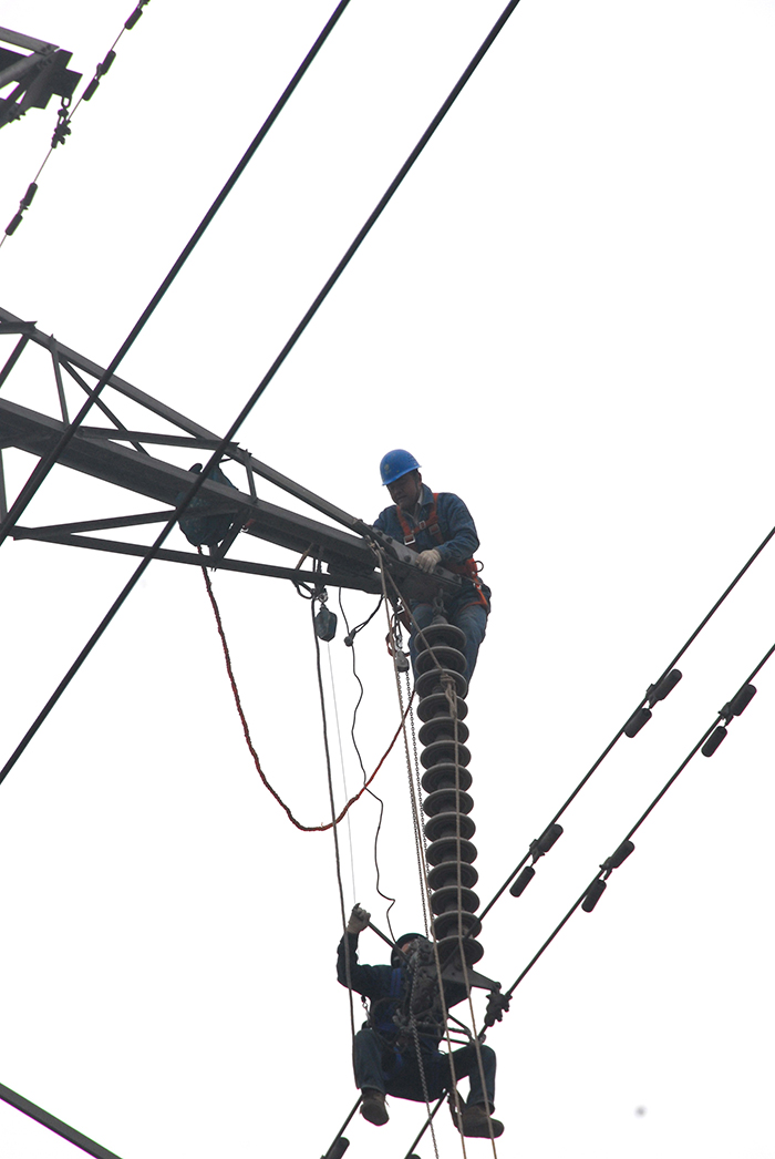 中電新聞網訊 通訊員 舒紅艷 報道 初春的風,透著絲絲寒意,城市的天空被霧霡籠罩著。3月6日一早,我們乘車前往甘肅省永靖縣劉聯輸電線路,采訪奮戰在那里的輸電人。 車輛行駛在彎延的公路上,兩旁大山覆蓋著還未融化的白雪,當問起這次工作的目的時,蘭州輸電工區張子龍主任告訴我們:“隨著永靖地區經濟的發展,用電量增速很快,而這次對劉聯一線更換合成絕緣子和涂防污材料的工作,主要是為了提高當地電網供電可靠性,保證電網安全運行,更好地為地方經濟發展服務。作為“安全年”活動開展之初的一項重要工作,我們工區非常重視此項工作,多次派人在現場勘察,組織相關人員制定安全技術措施,策劃施工方案和應急搶修方案。要求現場工作人員每人熟知工作內容,現場工作必須按標準化程序嚴格執行……” 說著話我們來到劉聯一線7號鐵塔下,公司監察、生技、安監等部室負責人和相關人員;輸電工區負責人、生技組、安監組等管理人員,檢修一班所有工作人員已齊集此地。 在現場,王建林班長宣讀完工作票之后,他用地道的蘭州話率領大家進行安全安全警言的唱誦“安全是生命之本、違章是事故之源…..”響徹整個現場。班組成員各就各位,丁少軍、劉明俊系安全帶、掛安全繩,準備上塔拆除舊的絕緣子串、隨后將更換防塵性能更好的合成絕緣子;班員李彩宏準備吊掛用的安全繩、安全負責人崔致鈞查看倒鏈和現場工器具,副班長郭致軍則帶領著金浩、魯濤、李歡慶掛接地線,一切都有序的進行著…… 雖已是春天,由于受冷空氣的影響,早春室外的溫度也在零下5度,尤其在空曠的山野間,冷風嗖嗖,一會兒我們的手臉都凍得生痛,這時,身處 50米高鐵塔上工作的丁少軍、劉明俊,動作雖然有點緩慢,松螺絲、掛倒鏈、捆綁絕緣子、調整位置每一個動作都是那樣的仔細、認真。 “小心點,注意安全,冷了就緩緩,千萬不要大意……”王班長的叮囑聲不斷回蕩在現場,使得寒冷的空氣里散發著絲絲的暖意。 下午3點,檢修一班出色完成了這天的工作,回家的路上歡笑聲回蕩在車廂里…… 據悉,在接下來的兩天里,蘭州輸電將完成劉聯一線11基塔合成絕緣子的更換工作,對劉聯一線全線10基塔進行噴涂。
