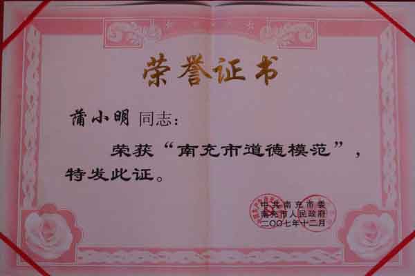 公司員工蒲小明榮獲南充市道德模范獎項