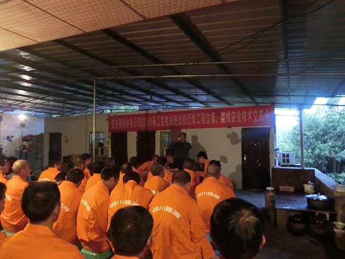 重慶綦南供電公司220KV綦江變電站進出線遷改工程立塔、架線安全培訓